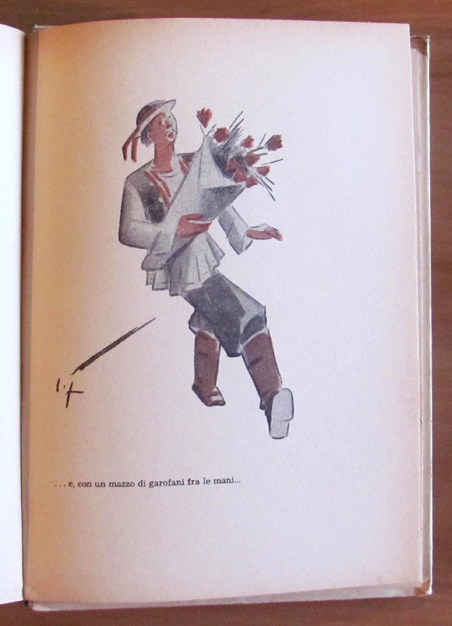 Piccole illustrazioni n.t. e 12 tavole in tricromia e a colori f.t. di Bepi Fabiano. Casa Editrice Corticelli - Milano, I edizione 1940. Cartonato editoriale con macchioline alle copertine e lieve distacco delle cerniere alle cuffie del dorso, in alto già precedentemente restaurata. Interno pulito e freschissimo. 17,5x24; pp.193. Buono stato , Buono (Good)