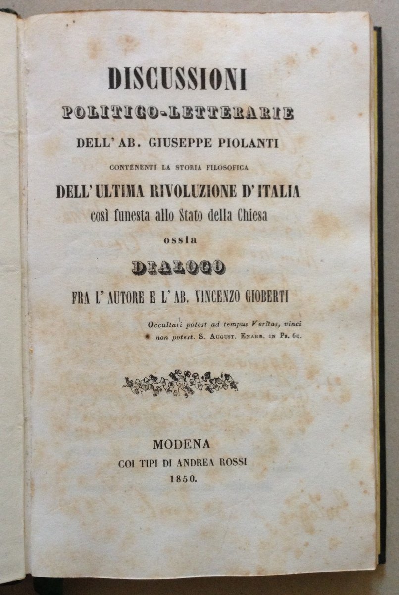 Piolanti Discussioni Politico Letterarie Ultima Rivoluzione d'Italia Modena 1850