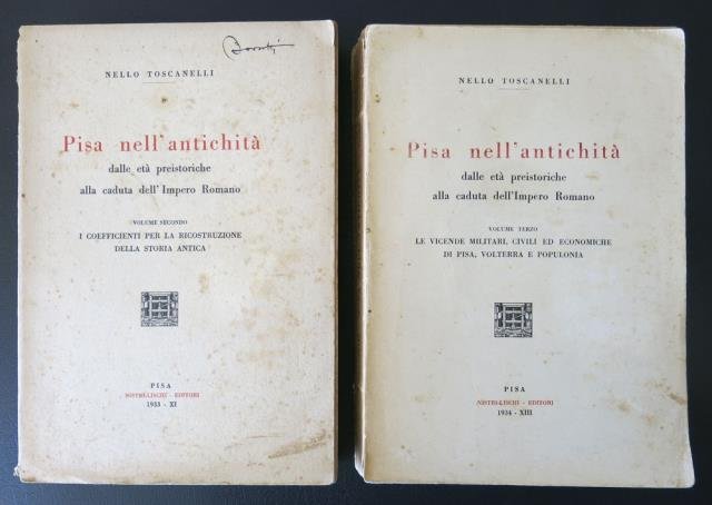 Pisa nell'antichità. Dalle età preistoriche alla caduta dell'Impero Romano. Volume Secondo: I coefficenti per la ricostruzione della storia antica. Volume Terzo: Le vicende militari, civili ed economiche di Pisa, Volterra e Populonia.