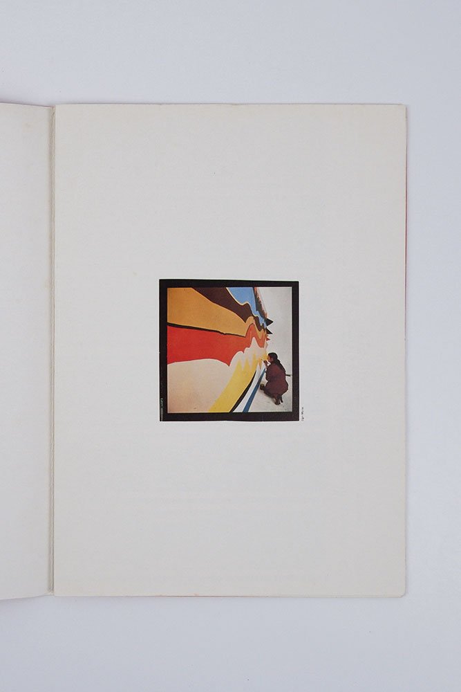 - brossura editoriale in cartoncino rosso stampato in nero al piatto superiore con il marchio della galleria impresso in nero,