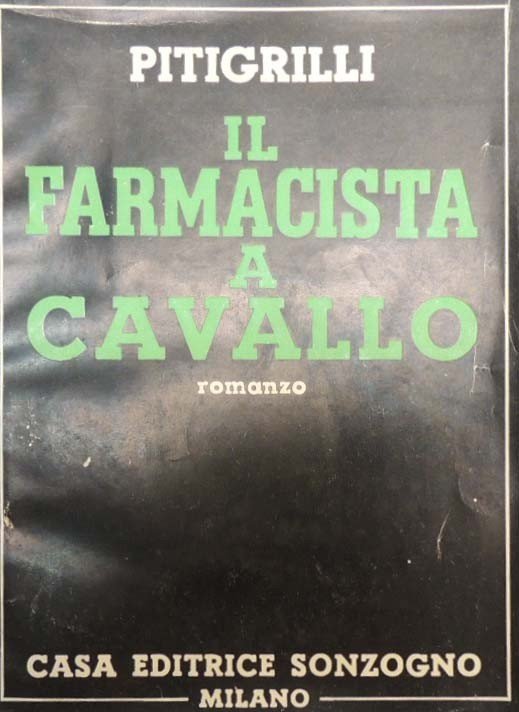 Pitigrilli, Il farmacista a cavallo, Casa Editrice Sonzogno, Milano 1948, pp. 244, br. ed. Lievi tracce d’uso alla brossura, per il resto ben conservato.