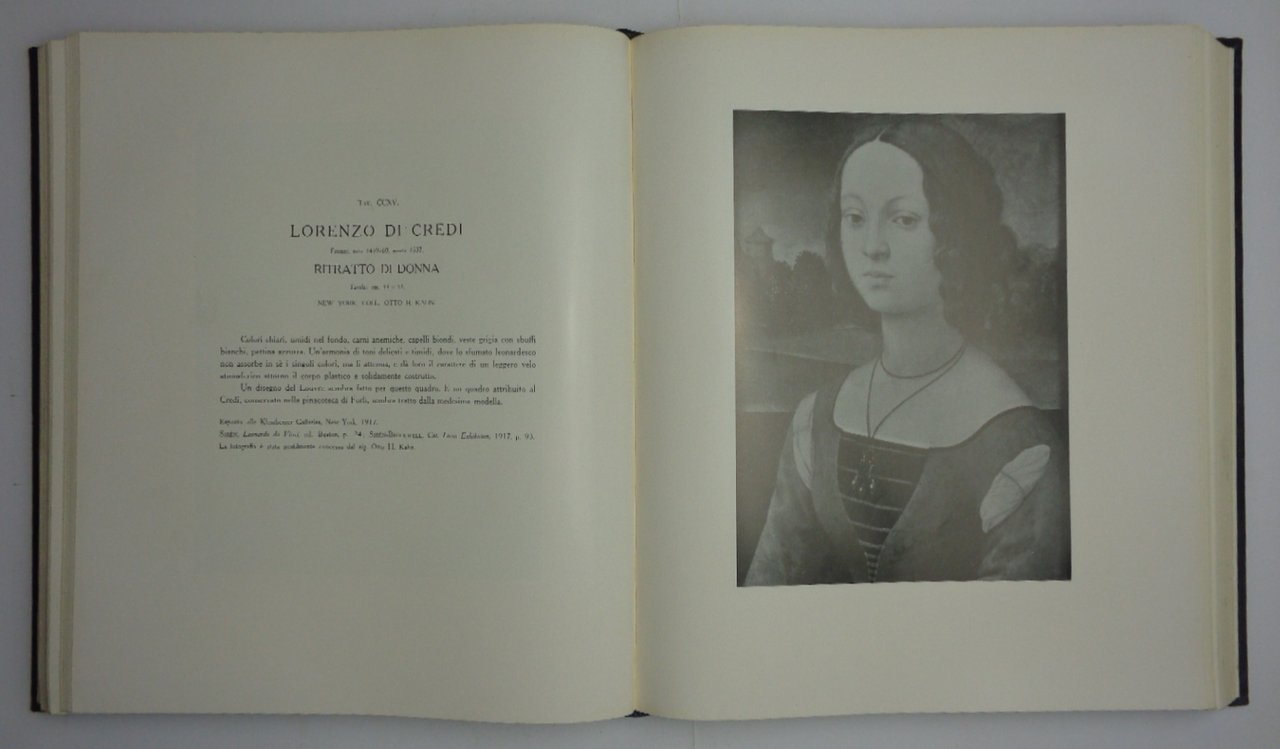 Un volume (33x39 cm) di 22 pp, antiporta a colori + 438 tavole con riproduzioni di opere d'arte con didascalia esplicativa a fronte + 11 pp di Indice degli artisti. Legatura editoriale in cartone telato nero con titolo argentato al piatto. Edizione numerata di 425 esemplari, questo il n. 21 ( esemplari in un singolo volume, altri sono poi stati suddivisi in due tomi). Minime fioriture a p. 7, qualche macchiolina chiara alla legatura, peraltro ottime condizioni per questa imponente opera curata da Lionello Venturi.