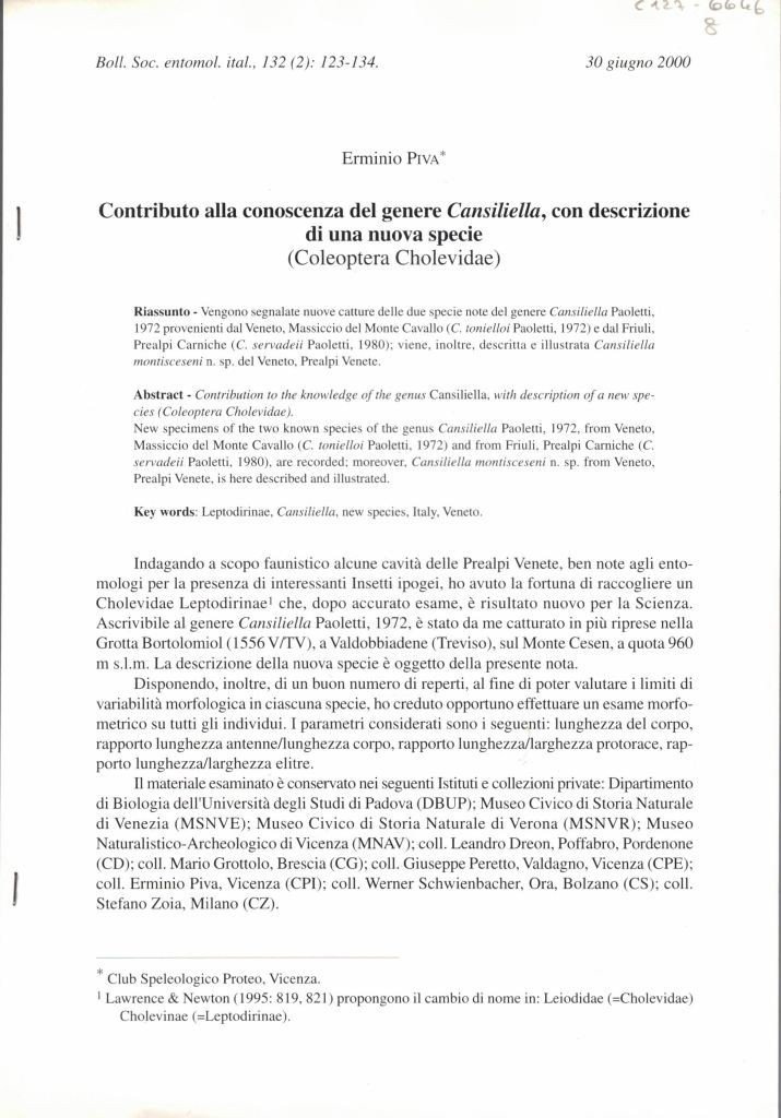 Piva, Contributo alla conoscenza del genere Cansiliella, con descrizione di una nuova specie (Coleoptera Cholevidae)