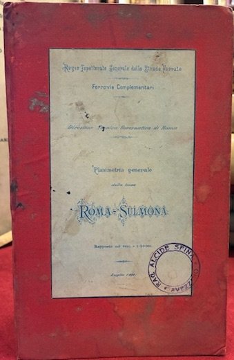 8vo (cm. 24,8), 18 cc.nn - ripiegate ed illustrate solo al recto in fototipia (c.d. leporello per un totale di cm. 245 ca.) - a formare la planimetria dell’intera tratta ferroviaria completa dell’orografia e dell’indicazione di tutti i centri abitati. Legatura editoriale in tela rossa con titoli a stampa su etichetta cartacea applicata al piatto anteriore (lievi tracce di polcere e segni di sofferta umidità). Interni in ottimo stato di conservazione. Provenienza: Collezione Spina, Avezzano (timbretto ex libris al piatto anteriore).