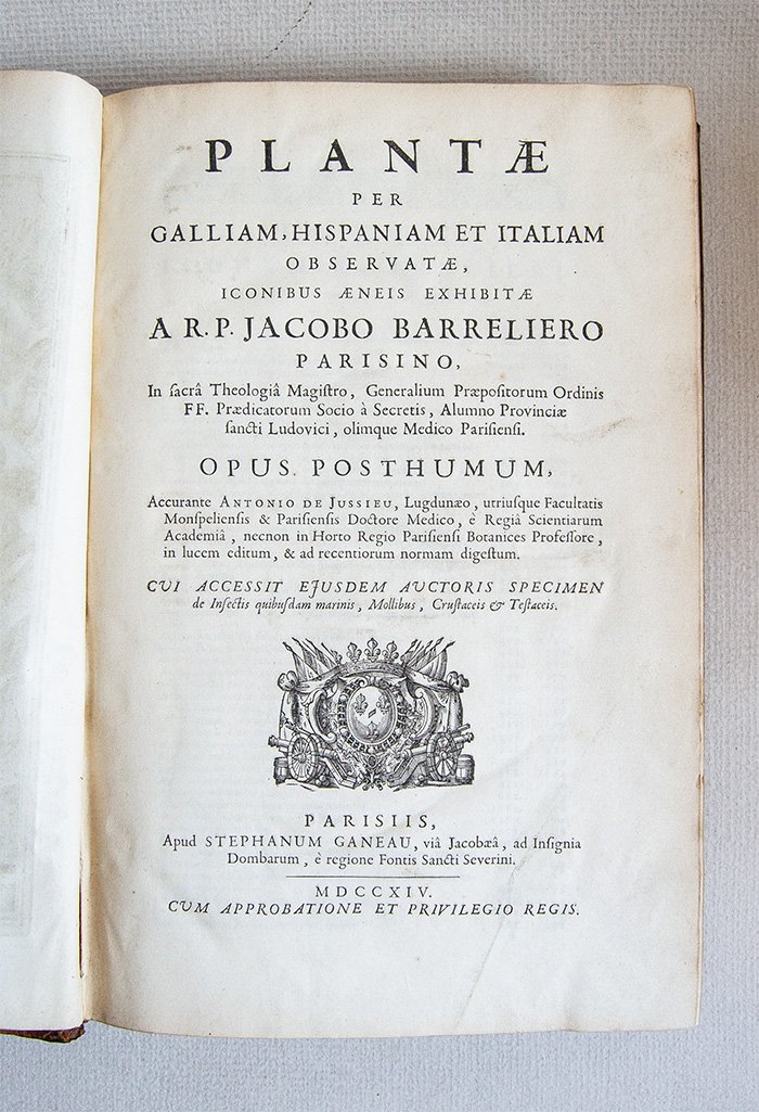 Plantae per Galliam, Hispaniam et Italiam observatae, iconibus aeneis exhibitae a R.P. Jacob Barreliero. Opus posthumum, accurante Antonio de Jussieu…
