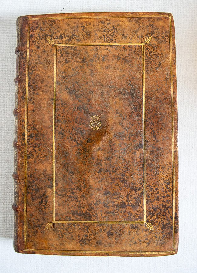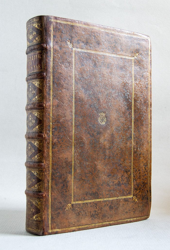 - Piena pelle coeva con fregi sui piatti, fregi e titolo in oro sul dorso; tagli dorati.