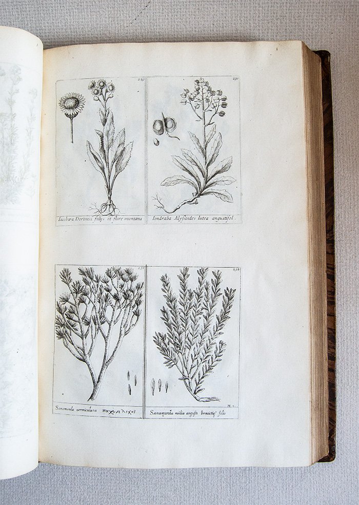 - (4) compreso frontespizio inciso, xxvi, (8), 8, 140, (2) pp. frontespizio inciso, 334 tavv. incise raffiguranti 1324 tipi di piante e 37 tipi di conchiglie.