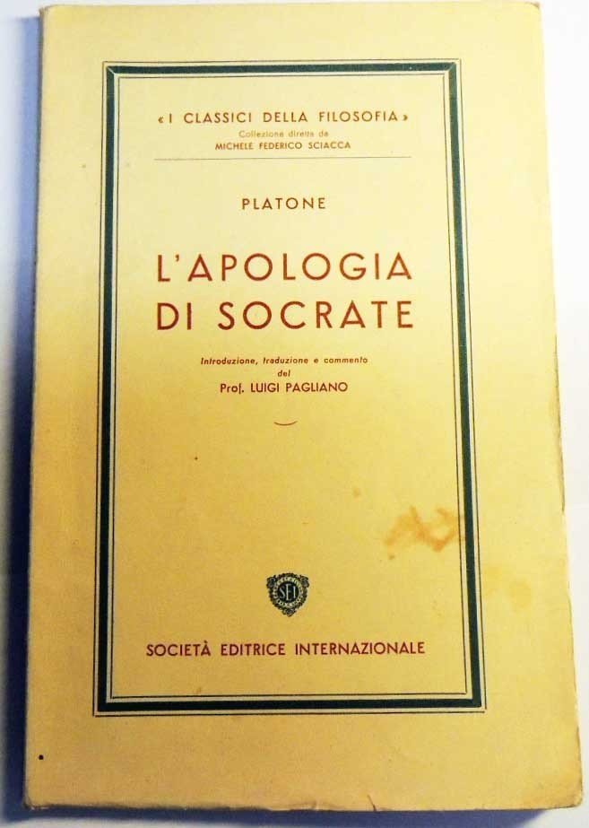 Platone, L’apologia di Socrate, introduzione, traduzione e commento del prof. Luigi Pagliano, Società Editrice Internazionale, Torino 1955, rist., pp. 99, cm 21, br. ed. Collana I classici della filosofia. Lievi tracce d’uso alla brossura, per il esemplare resto ben conservato.