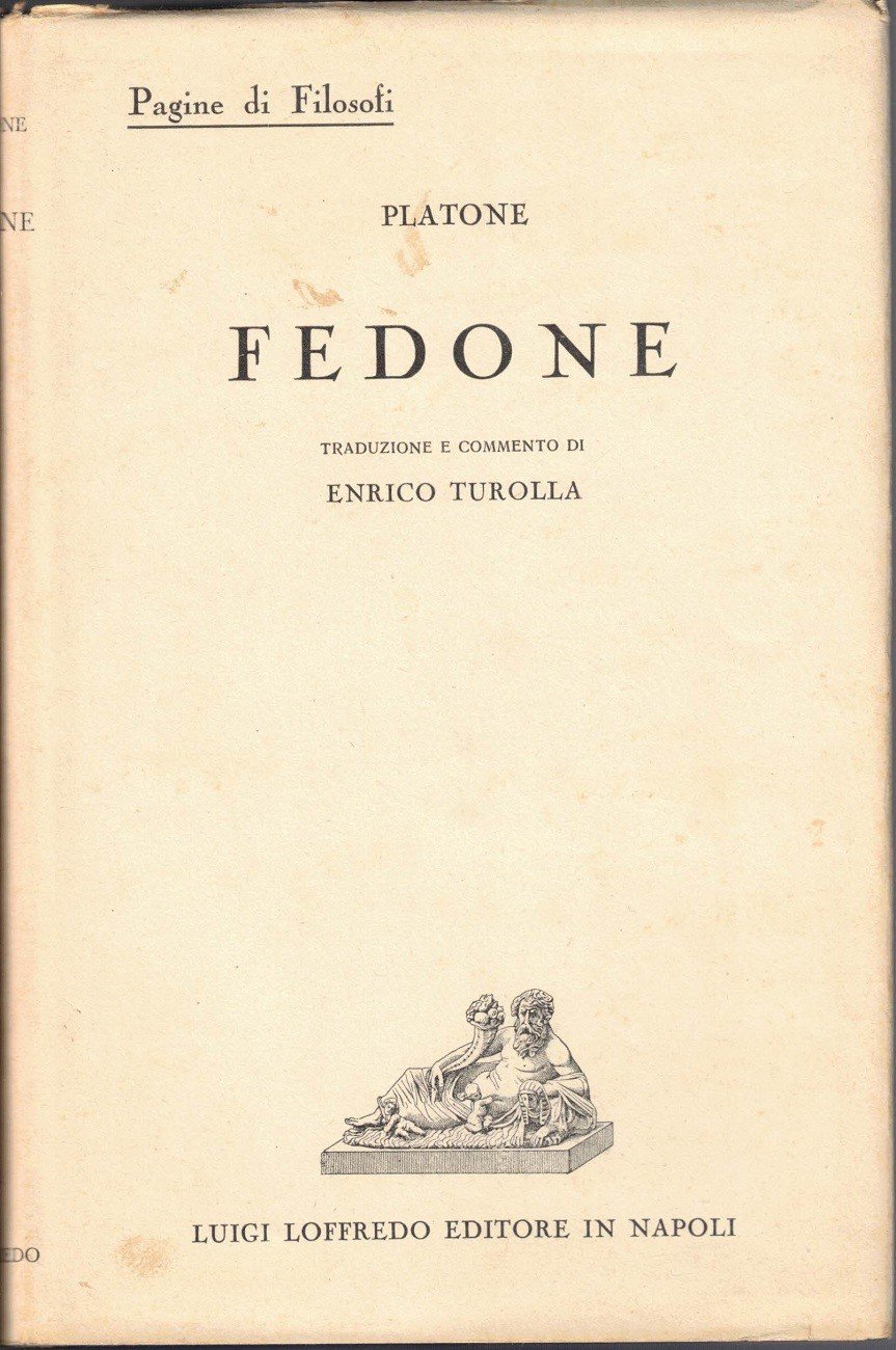 Platone (Plato), Fedone, traduzione e commento di Enrico Turolla, Luigi Loffredo Editore, Napoli 1939, pp. XVIII, 155, cm 20, legatura in tutta tela ed. con titoli in oro al dorso e sovraccoperta. Collana Pagine di filosofi per i giovani italiani. Testo, introduzione, note e apparati in lingua italiana. Uno strappetto senza mancanze alla sovraccoperta, lieve brunitura della carta, minime fioriture, per il resto ottimo esemplare.