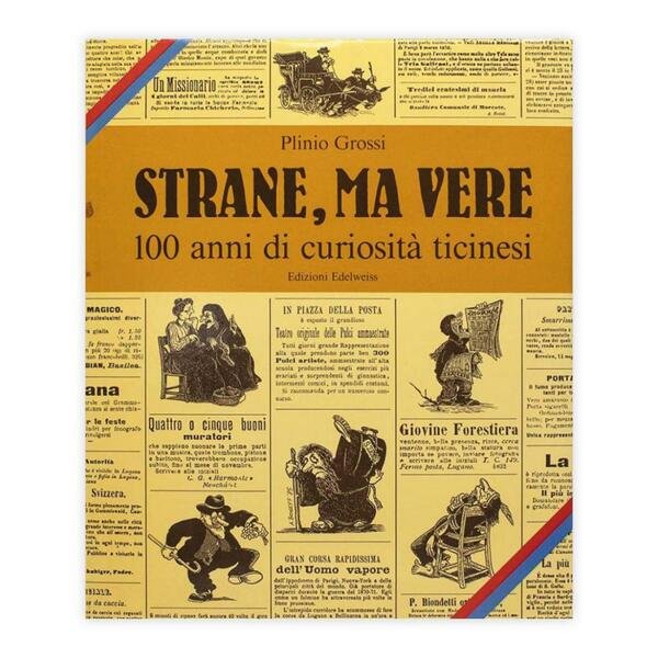 Autore: Plinio Grossi Titolo: Strane, ma vere Sottotitolo: 100 anni di curiosità Ticinesi Edizione: Edizioni Edelweiss 1985 Dimensioni: 22,5 x 27 cm c.a. Pagine: 200 c.a. Copertina: Cartonato con sovracopertina Condizioni: Ottime come da foto