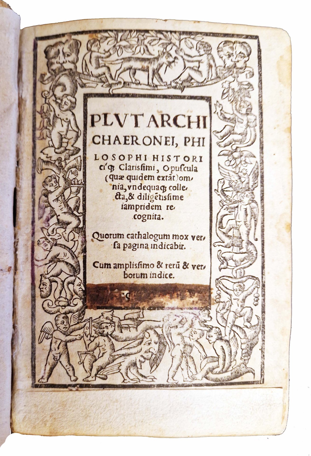 Plutarchi Chaeronei, philosophi historiciq[ue] clarissimi Opuscula (quae quidem extant) omnia, vndequaque collecta, & diligentissime iampridem recognita. Quorum cathalogorum [… ]. Cum amplissimo & rerum & verborum indice.