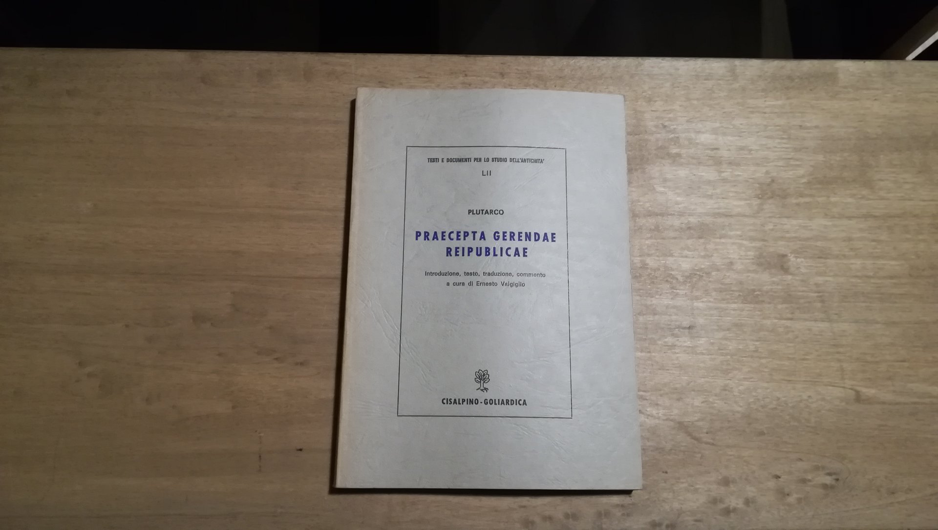 A cura di di Ernesto Valgiglio - Plutarco. Praecepta gerendae reipublicae Cisalpino Goliardica - Prima edizione 1976 Libro in ottime condizioni, minimi segni del tempo, leggermente ingiallito. Non esitate a contattarci per altre foto o richieste. Saremo lieti di soddisfare ogni vostra esigenza.