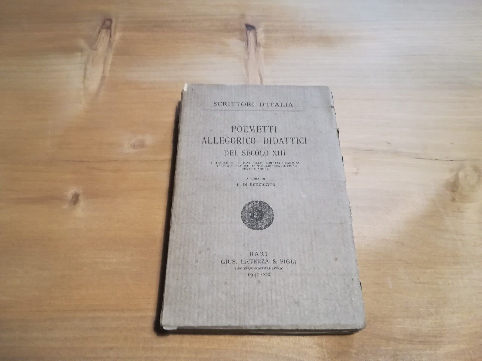 A cura di L. Di Benedetto - Poemetti allegorico-didattici del secolo XIII Laterza - Scrittori d'Italia - Prima edizione 1941 Libri in ottime condizioni, minimi segni del tempo, piccola mancanza al dorso superiore, minima fioritura. Non esitate a contattarci per altre foto o richieste. Saremo lieti di soddisfare ogni vostra esigenza.