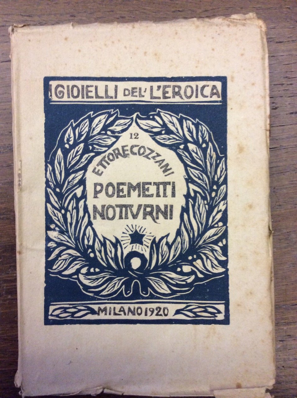 In-16 gr., brossura orig. figur., pp. 55,(7), testo entro cornice blu, con belle xilografie in tinta nel testo, anche a p. pagina, di F. Gamba. "Prima edizione". Collana I Goielli dell'Eroica - n. 12. Ben conservato, con dedica autografa dell'Autore.