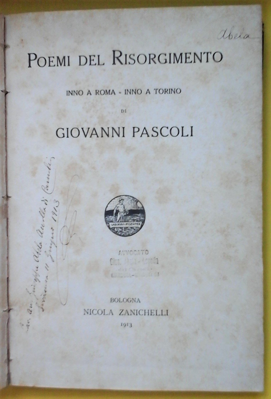 Poemi del Risorgimento Inno a Roma Inno a Torino di G. Pascoli Zanichelli 1913