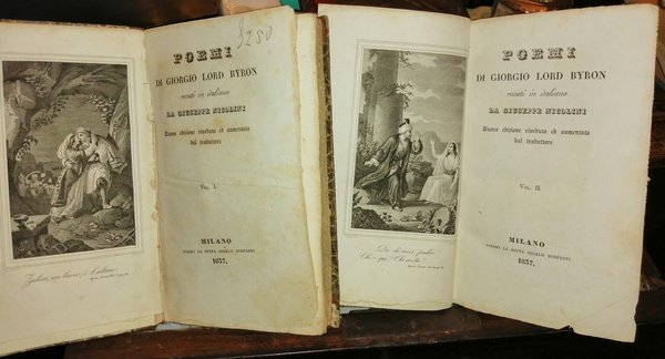 Poemi di Giorgio Lord Byron recitati in italiano da Giuseppe Nicolini. Nuova edizione riveduta ed aumentata dal traduttore. Vol. I -II