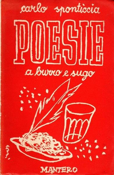 Poesie a burro e sugo, prima edizione maggio 1940, pp. 104, formato 13,5 x 20,5.<BR>Copertina morbida illustrata con titoli in bianco al piatto anteriore e in rosso sul dorso. Prefazione di Orazio Marcheselli. <BR>Ottime condizioni.