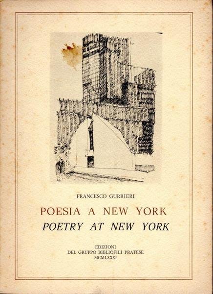 Poesia a New York, prima edizione giugno 1981, pp. 93, formato 15 x 21.<BR>Copertina morbida con piccola illustrazione la piatto anteriore e titoli in nero e marrone. Testi in italiano ed inglese. All'interno dedica dell'autore a Maria Luigia Guaita, moglie di Enrico Vallecchi, datata 30 dicembre 1982. <BR>Macchia al piatto anteriore. Leggere fioriture. Nel complesso condizioni molto buone.