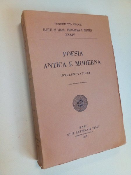 8°; pp. viii - 454; brossura editoriale stampata; cucito.<BR>In ottimo stato.<BR>Terza edizione riveduta; collana Scritti di Storia Letteraria e Politica XXXIV.<BR>Tratta di: Omero, Terenzio, Virgilio, Catulllo,Orazio, Bertran de Born, Dante, poesia d'amore e poesia eroica, Tasso, Moliere, Racine, Hugo, Baudelaire, Foscolo, Leopardi, Carducci e altri.