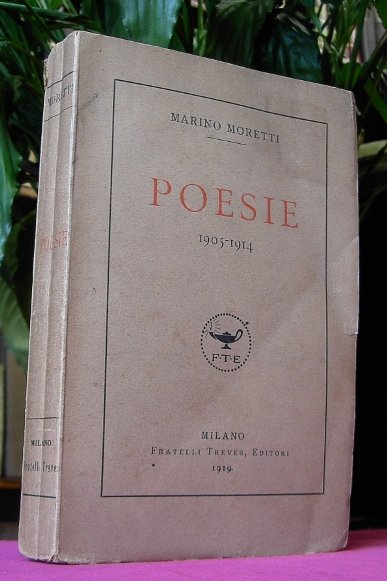 Volume in 8, brossura editoriale, titolo al piatto ed al dorso, sguardie (ritratto fotografico dell'autore, applicato dal precedente proprietario), occhiello, frontespizio, (8) 263 (8) pp. Le belle poesie crepuscolari del grande scrittore romagnolo, per la prima volta raccolte in questa edizione, arricchita oltre che dal ritratto (ovviamente non presente in altre copie), da Tre articoli di critica letteraria riguardanti l'autore, presi da giornali d'epoca e conservati all'interno del volume, e da due piccole 'chicche' inedite (una 'Sciarada' ed una piccola poesia intitolata 'Aurora'), anch'esse ritagliate da giornale d'epoca ed applicate al fondo del volume. Ottima prima edizione. In bello stato.
