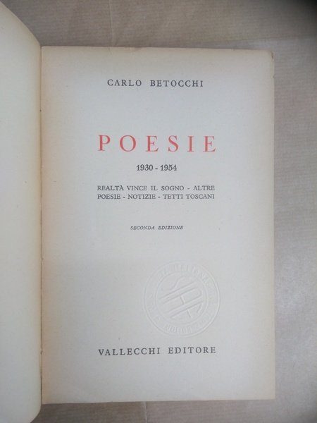 POESIE 1930-1954. Realtà vince il sogno - Altre poesie Notizie - Tetti toscani.