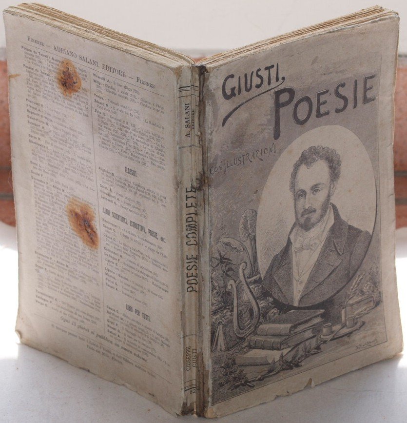 In 8. Dim. 19,5x13 cm. Pp. 303. Edizione del 1917 di questa raccolta di poesie di Giuseppe Giusti (1809-1850), la cui fama resta affidata a componimenti di carattere polemico, satirico, vivace. Note di Francesco D'Ambra. L'opera è in volume ed è completa. Ritratto di Giusti in antiporta. Brossura editoriale illustrata Brossura editoriale in buone condizioni generali con lievi usure ai margini e dorso. Legatura in buone condizioni. All'interno le pagine si presentano in ottime condizioni con rare fioriture. Edition of 1917 of this collection of poems by Giuseppe Giusti (1809-1850), famous for his polemics and funny poems. Notes by Francesco D'Ambra. Portrait of Giusti in the frontspice. The work is in one volume and it is complete. Editorial illustrated cover. In good conditions. Editorial cover in good general conditions slightly worn in the edges and spine. Binding in good conditions. Inside pages are in good conditions with occasional foxings.