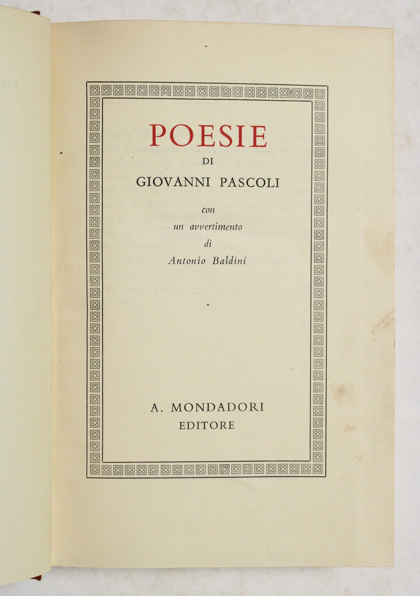 In 16° (mm 200x130); pagg. 1427. Tela editoriale con titolo e fregio in oro al dorso. Buon esemplare. <BR>