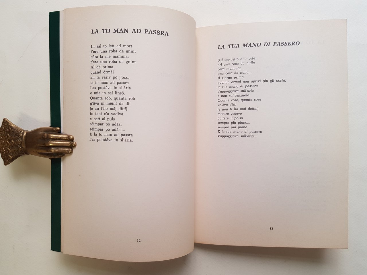 In 8°; pp. 105; brossura editoriale con titoli al piatto e al dorso e sovraccoperta illustrata; cucito.<BR>Poesie dialettali con testo a fronte in italiano.<BR>CONDIZIONI OTTIME
