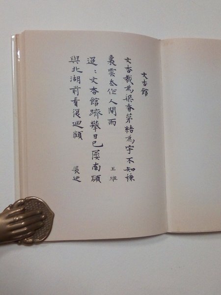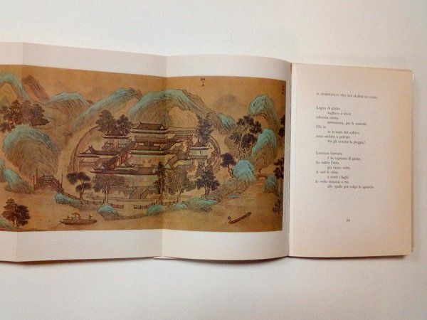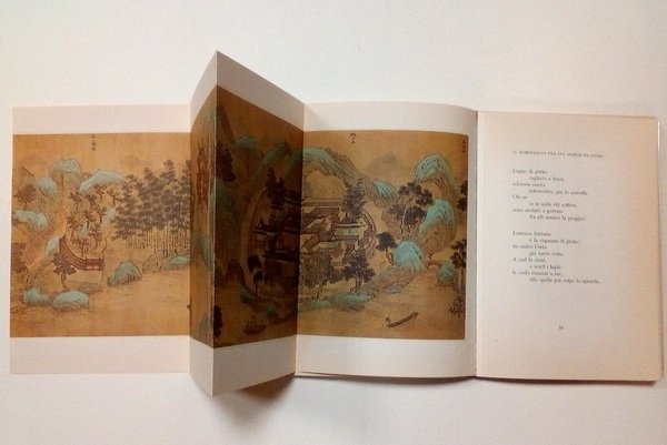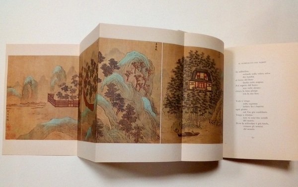 Traduzione dal cinese di Martin Benedikter.<BR>Nuova Collana di Poeti Tradotti con Testo a Fronte, 8. Prima edizione.<BR>In 8°; pp. 92 con 5 tavole in colore fuori testo più volte ripiegate; raffinata legatura in tutta seta avorio con stampa in marrone; sovraccoperta protetiva in acetato trasparente; cofanetto in mezza seta con ideogramma decorativo in rosso; cucito.<BR>Testo cinese a fronte.<BR>CONDIZIONI OTTIME, conservata la cartolina editoriale.<BR>