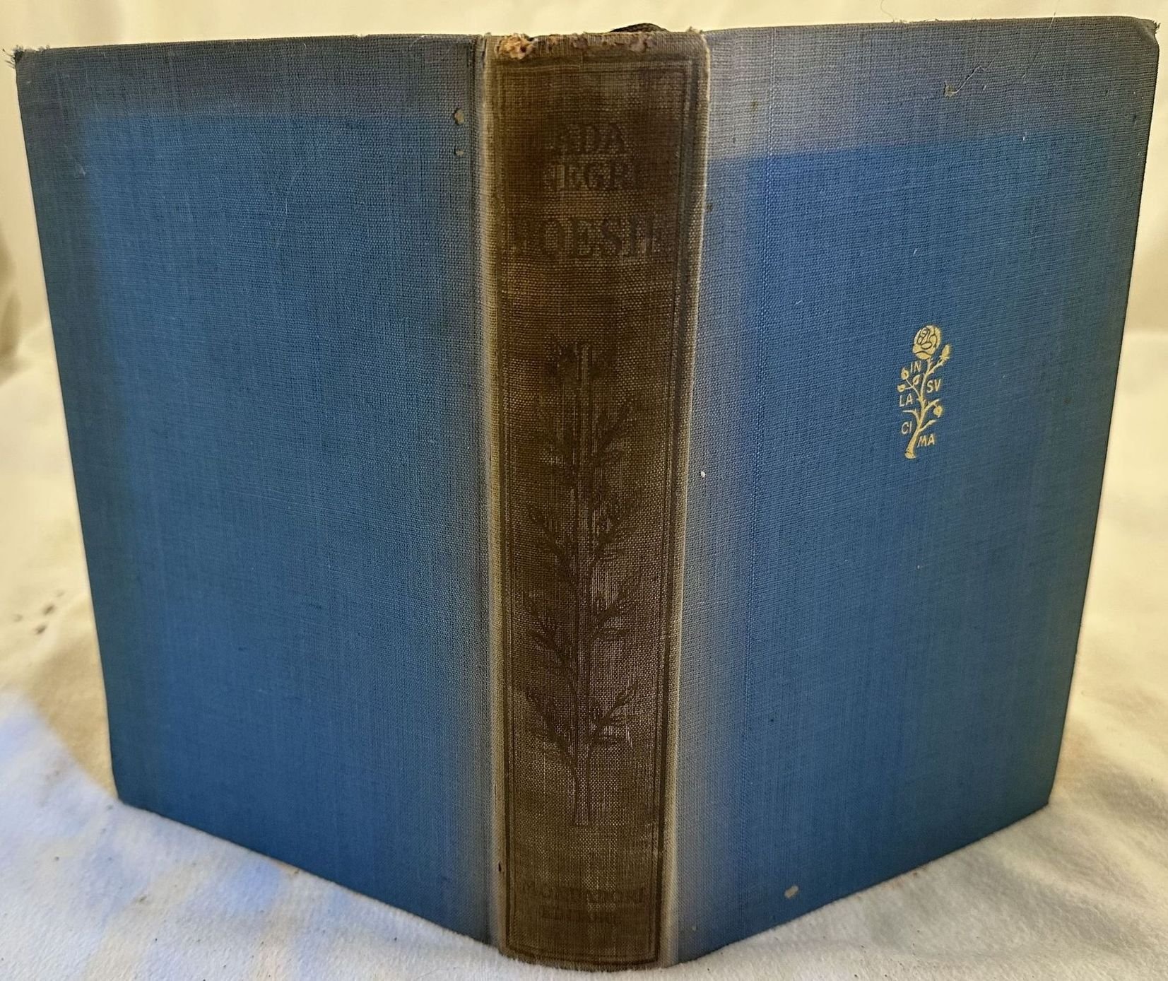 Prima edizione del 1948 di questa raccolta di poesie della poetessa Ada Negri (1870-1945). Dedica datata 1949 alla prima carta bianca. In buone condizioni. Copertina in tela editoriale in buone condizioni con lievi usure marginali. Segni di scoloritura. Legatura in buone condizioni. Pagine in buone condizioni generali con rare fioriture. In 8. Dim. 20x13,5 cm. Pp. 1011+(1)First edition of 1948 of this collection of poems by the poet Ada Negri (1870-1945). Dedication dated 1949 in the first blank page. In good conditions. Cloth editorial cover in good conditions lightly worn in the extremities. Signs of discoulouring. Binding in good conditions. Pages are in good conditions with occasional foxing. In 8. Dim. 20x13,5 cm. Pp. 1011+(1)<BR><BR>