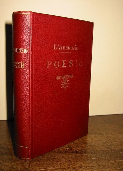 24mo (cm. 14,5), 2 cc.nn., 226 pp., 3 cc.nn. di catalogo editoriale. Legatura in tela rossa martellata con titoli (’Poesie’) in oro al ds. ed al piatto anteriore. Collezione ‘Bijou’. Ottimo esemplare. De Medici, 28; Guabello, 73-74; Vecchioni, 17a.