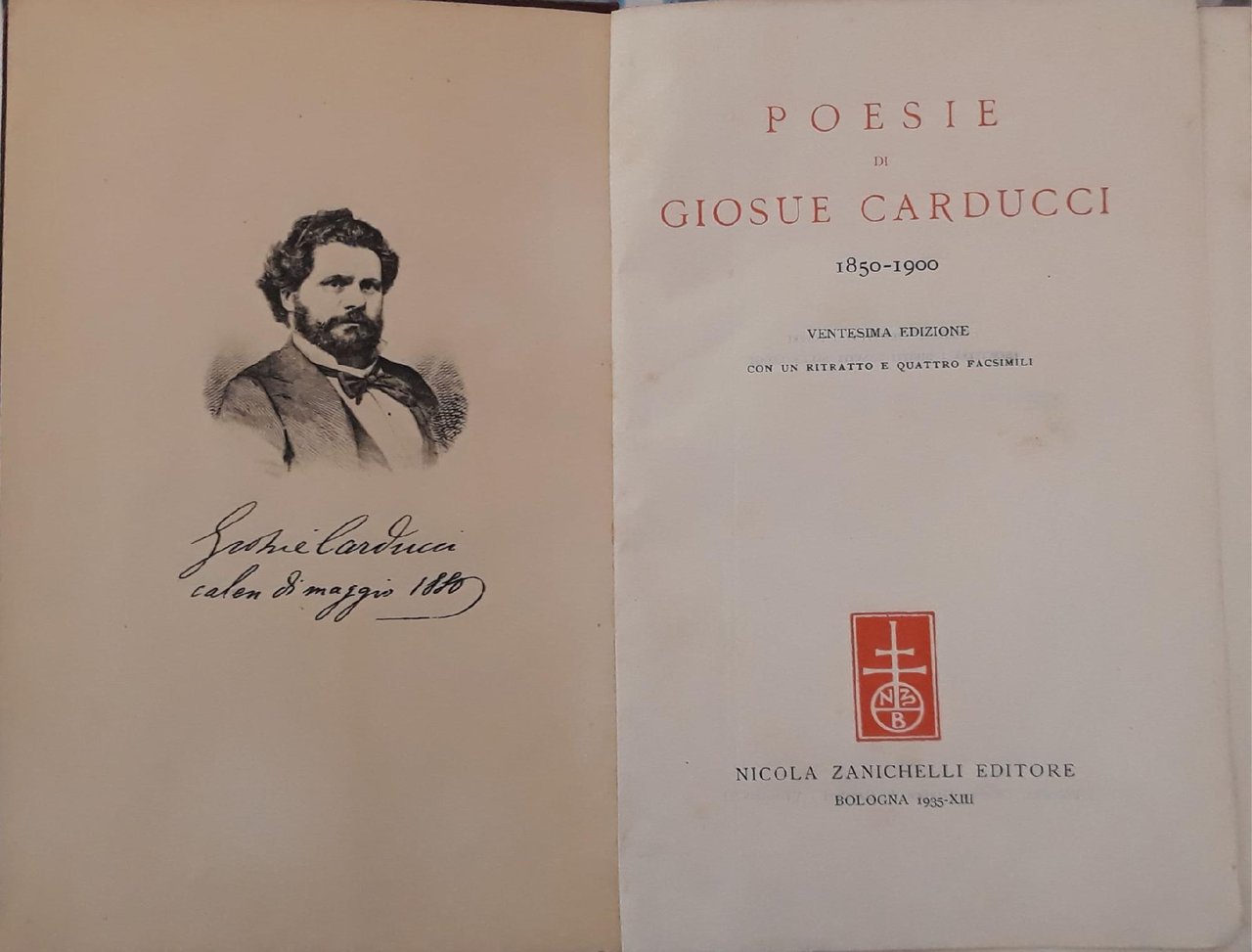 Poesie di Giosue Carducci (1850-1900) con un ritratto e quattro facsimili