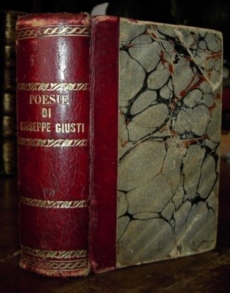 Volume in 16, brossura editoriale (mende e piccole mancanze), titolo al piatto inquadrato ed al dorso, occhiello con al verso ritratto dell'Autore, frontespizio, 480 pp. Corretta, piacevole edizione delle poesie del Giusti, in ancor buona conservazione, poche mende d'uso e qualche orecchietta ai margini delle prime ed ultime carte. Grazioso piccolo libro