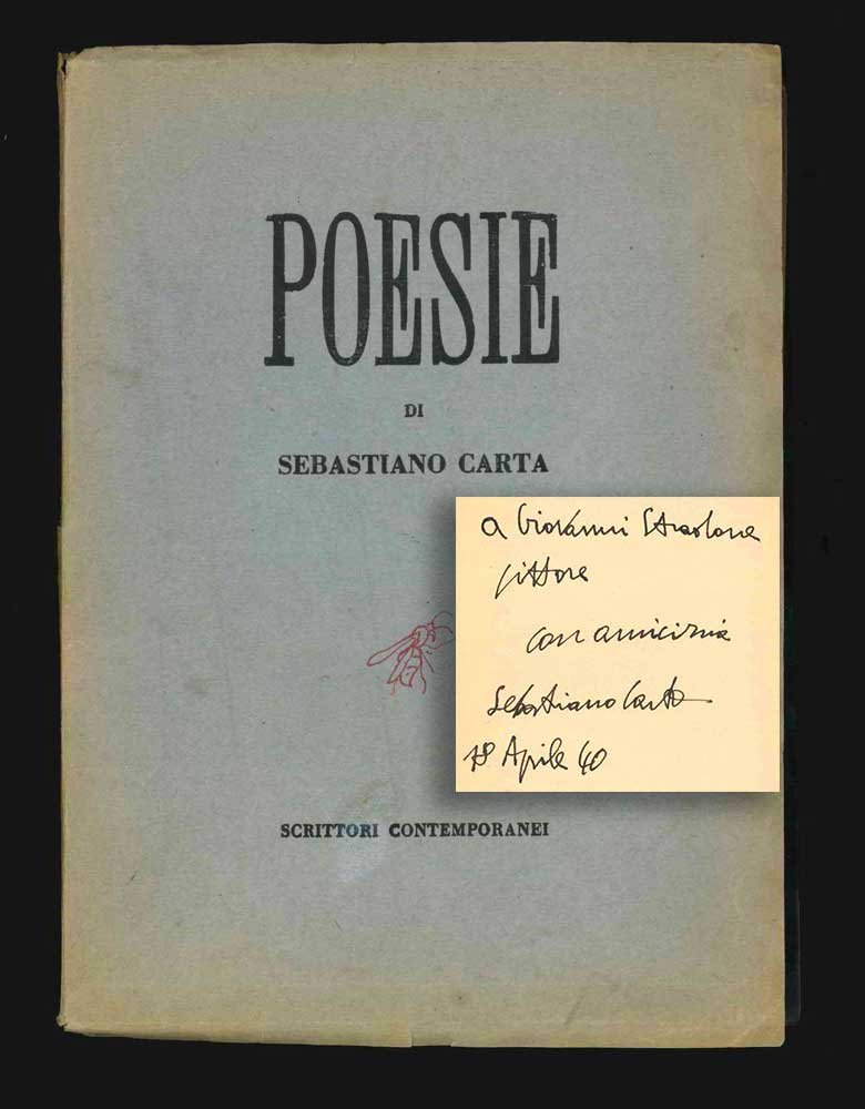 LIBROPrima edizione.Esemplare numero 349 di soli 400 stampati, in più che buone se non ottime condizioni, con gli usuali segni del tempo (dorso scolorito, sfrangiature perimetrali con qualche lacerazione alla copertina), impreziosito da un disegno manoscritto in grafite sulla quarta di copertina.Rara edizione tirata in soli 400 esemplari numerati. La casa editrice è diretta da Marcello Gallian, che scrive anche un importante «Documento» prefatorio per metà occupato da un sincero tentativo riconciliatorio con il «grande» Marinetti — primo scopritore del Carta poeta, «la figura più interessante del futurismo letterario romano degli anni trenta» nelle parole di Claudia Salaris (cit. in Diz. Fut. s.v. Carta).Cammarota, Futurismo, 91.5