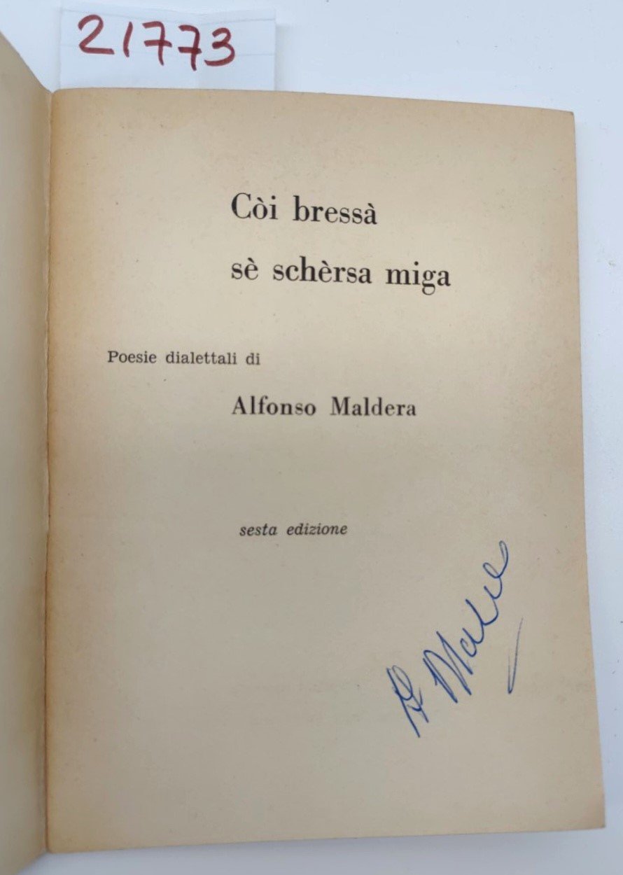 Poesie dialettali bresciane Alfonso Maldera Coi Bressà se schersa miga 6° ed. autografato