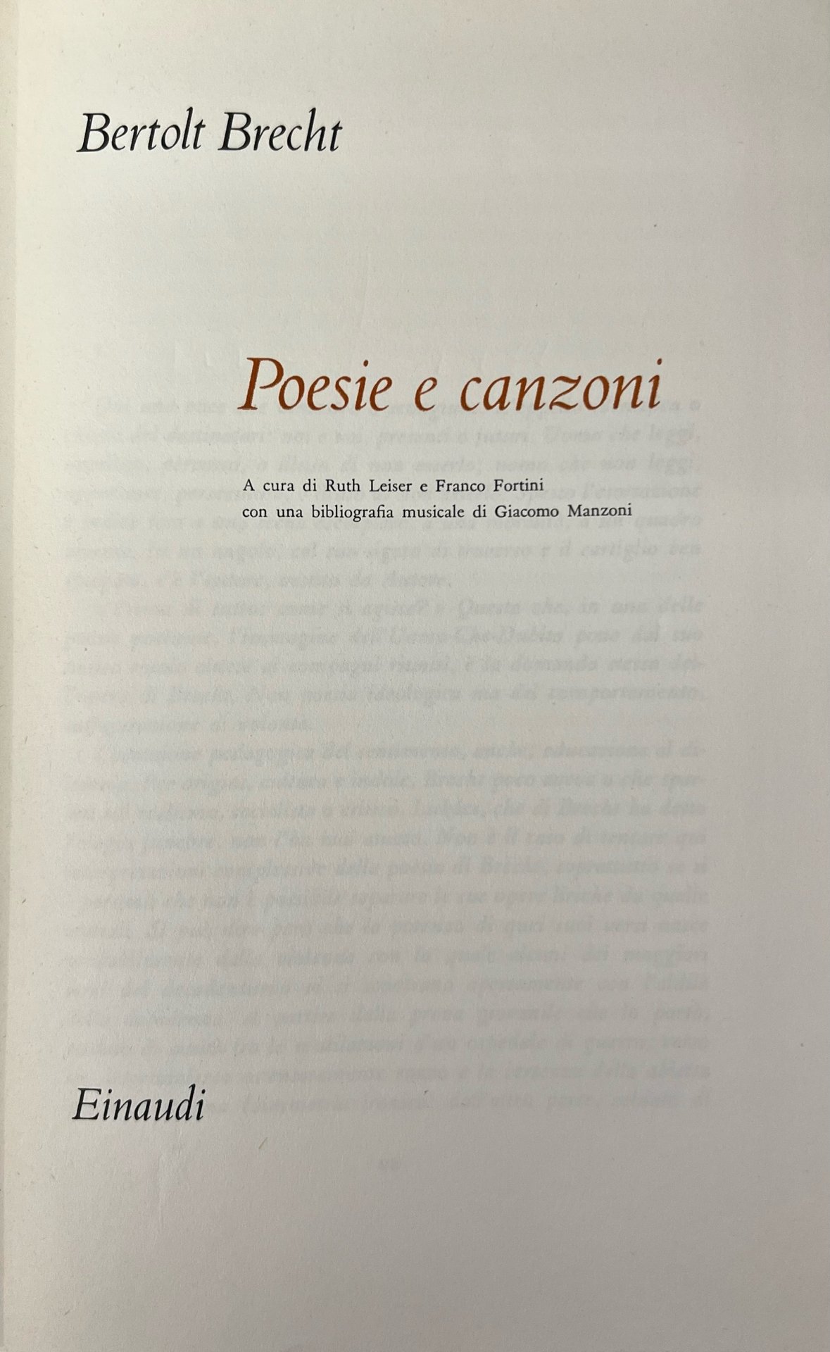 A cura di Ruth Leiser e Franco Fortini, con una bibliografia musicale di Giacomo Manzoni. in ottavo leg. cart. con cofanetto pp. 498 Buono (Good) Buon es. con qualche segno del tempo.