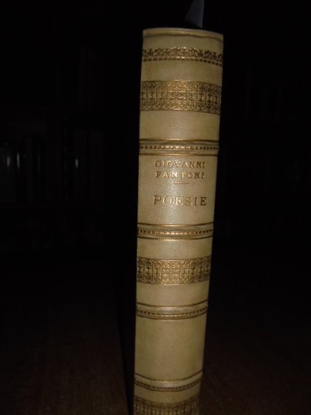 Giovanni Fantoni (Labindo). Bari, Gius. Laterza & Figli, 1913. POESIE. A cura di Gerolamo Lazzeri. In-8°, m. pergamena con angoli, dorso a nervi con fregi e titoloin oro, taglio superiore dorato con segnalibro in cotone. 478 pp., 1 f. bianco. Bell' esemplare. Neg. mob. nero.
