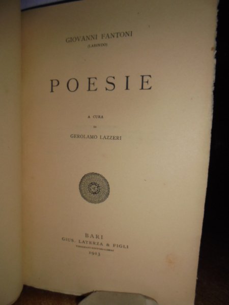 POESIE. Giovanni Fantoni (Labindo). Laterza 1913