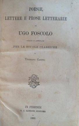 Poesie, lettere e prose letterarie di Ugo Foscolo. Scelte e annotate per le scuole classiche da Tommaso Casini.