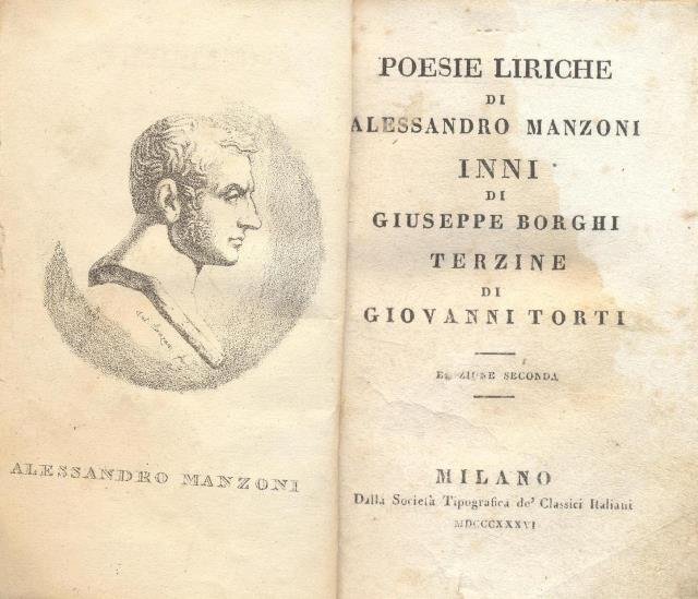 Poesie liriche di Alessandro Manzoni, inni di Giuseppe Borghi, terzine di Giovanni Torti.