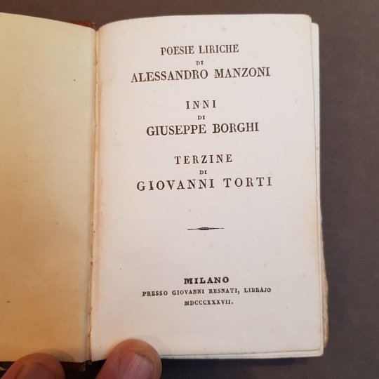 In-16°, pp. 178, (4), legatura coeva in mezza pelle, titolo e fregi in oro al dorso. Manca il ritratto.