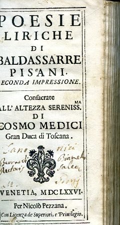 Poesie liriche. Seconda impressione. Consacrate all'Altezza Sereniss.ma di Cosmo Medici Gran Duca di Toscana