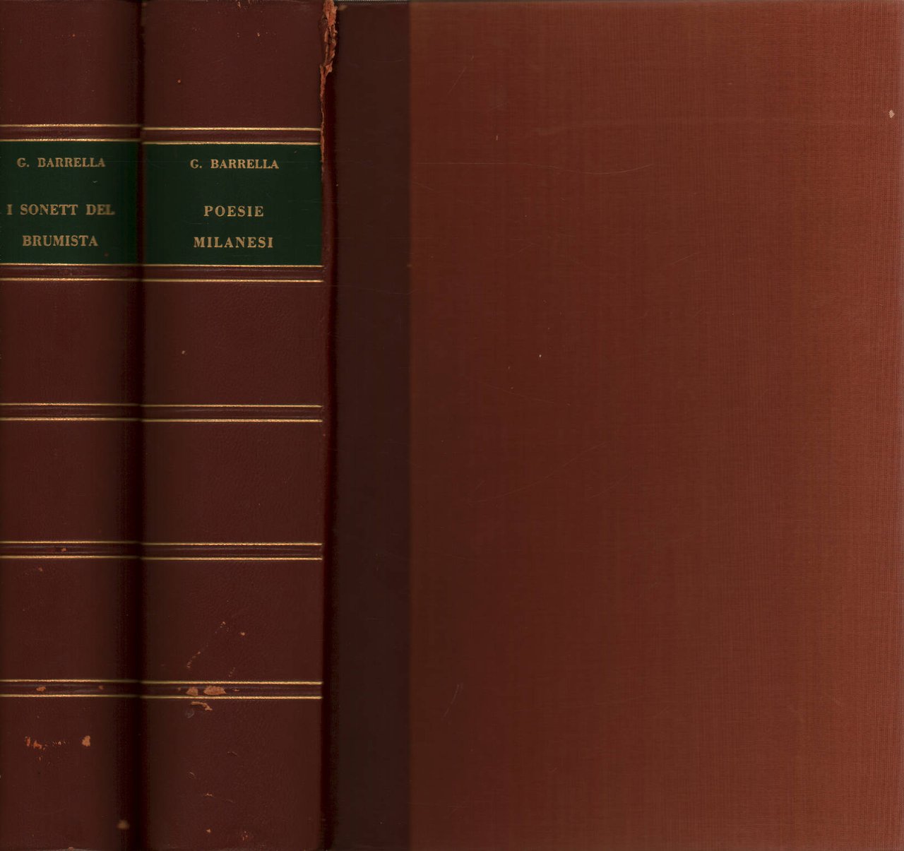 Esemplari in buone condizioni, in cofanetto con macchie di polvere e segni di usura a bordi e angoli.Copertine con legature in mezza pelle con titoli dorati ai dorsi, con marcati segni di usura e strappi ai bordi dei dorsi.Tagli marcatamente ingialliti e con lievi macchie di polvere.Pagine leggermente ingiallite.Legatura del Volume I sonett del Brumista quasi totalmente scollata.Testo in Lingua Italiana.