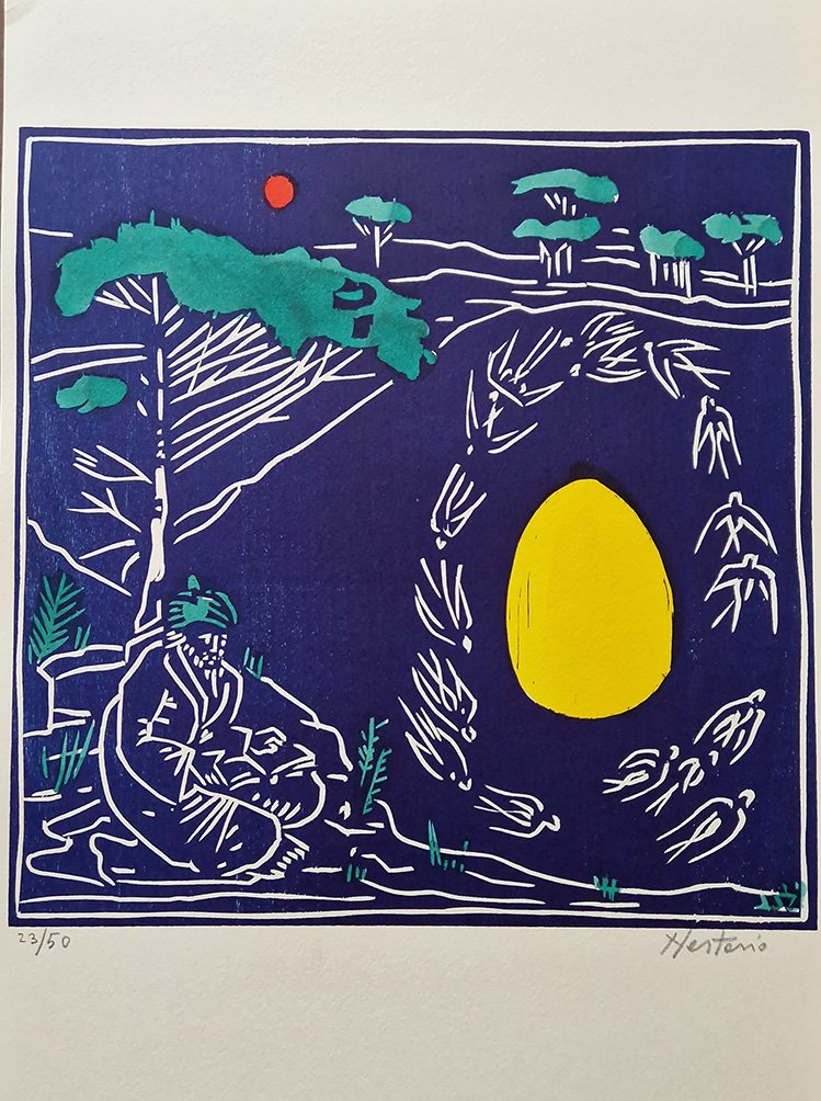 In folio; cartella t.tela edit. con titoli ed illustraz. al piatto realizzata da Enrico Beretta, sciolte sette belle xilografie originali acquarellate a mano, numerate e firmate a matita. La tiratura è di soli 50 esemplari più alcune prove d'artista e di colore.<BR>(vedi riproduz)