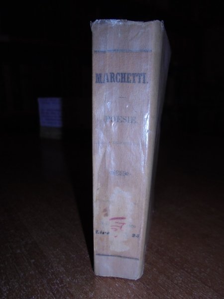 MARCHETTI, Giovanni. Firenze, G. Barbera, 1878. Poesie nuovamente pubblicate a cura di Adolfo Borgognoni. In-24°, br., cop. orig. lxii, 340 pp. e ritratto dell' Autore. Esemplare intonso con velina. (Collezione Diamante). Neg. mob. 4