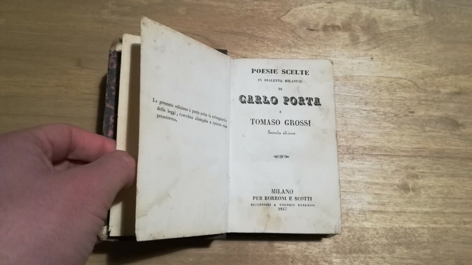 Poesie scelte in dialetto milanesi di Carlo Porta e Tomaso Grossi Borroni e Scotti - Seconda edizione 1847 Libro in ottime condizioni, minimi segni del tempo: probabile mancanza di una pagina finale dell'indice, nel complesso in ottimo stato, piccoli difetti e abrasioni alla rilegatura. Non esitate a contattarci per altre foto o richieste. Saremo lieti di soddisfare ogni vostra esigenza.