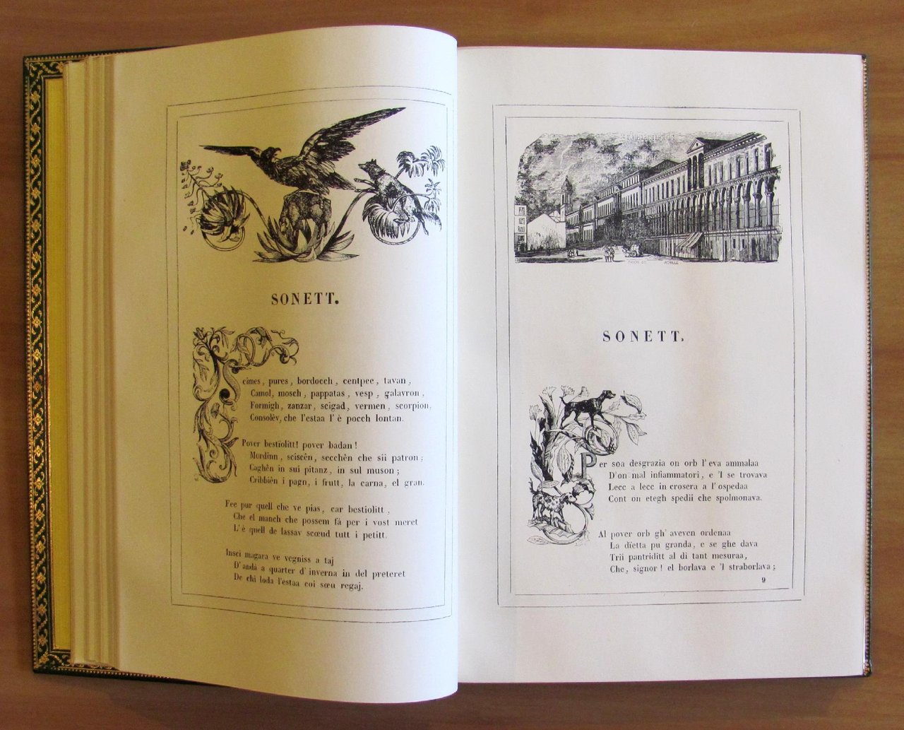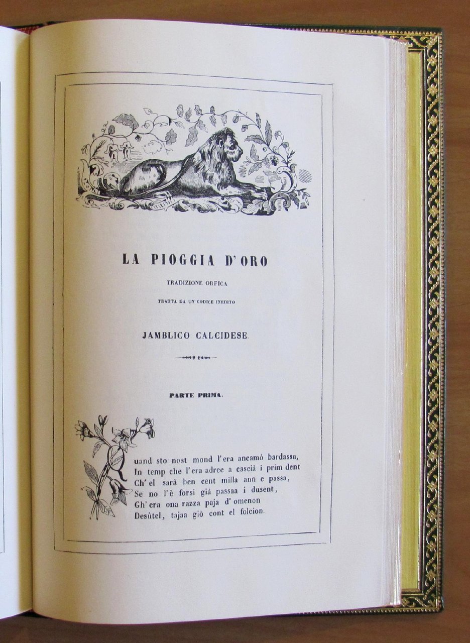 Moltissime illustrazioni in b/n n.t. di Gonin, Riccardi, Sacchi ed altri. Copia identica con clichés in zinco dell'originale della Tip. Guglielmini e Redaelli - Milano, 1842 in Edizione Fuori Commercio realizzata da Nuova Editrice Internazionale - Milano, 1965. Piena pelle editoriale finemente decorata con fregi e titoli in oro zecchino, incluse dentelle interne, e tagli dorati alle pagine il tutto in custodia incartone editoriale. Minima abrasione della pelle ai margini alto e basso delle cerniere del dorso. 17x25; pp.460. Stato di Nuovo. , Ottimo (Fine)