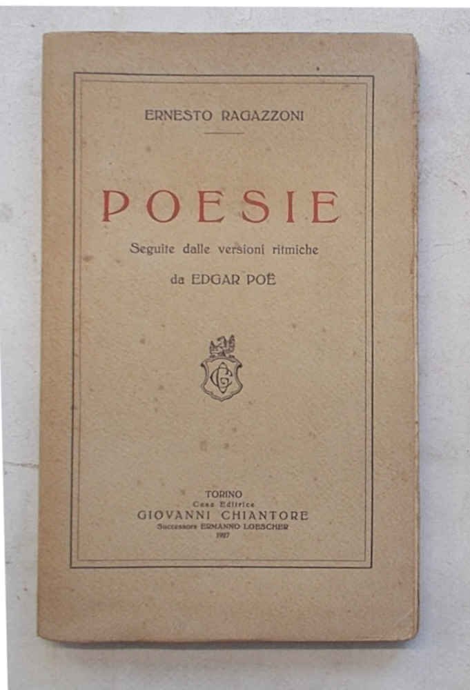 In 8° stretto (cm. 21 x 13); pagg. 126; leggera carton. origin. Manca l'occhietto. VG- -. ** Allegato foglio dattiloscritto dei versi di Ernesto Ragazzoni "L'apoteosi del cesso di Orta", che inizia con un "Culi d'Orta esultate!". Questa composizione non è tra quelle pubblicate nel volume. . Nella prefazione leggiamo che Ragazzoni, novarese, "uomo di taverna, fu anche, con molta eleganza, uomo di mondo".