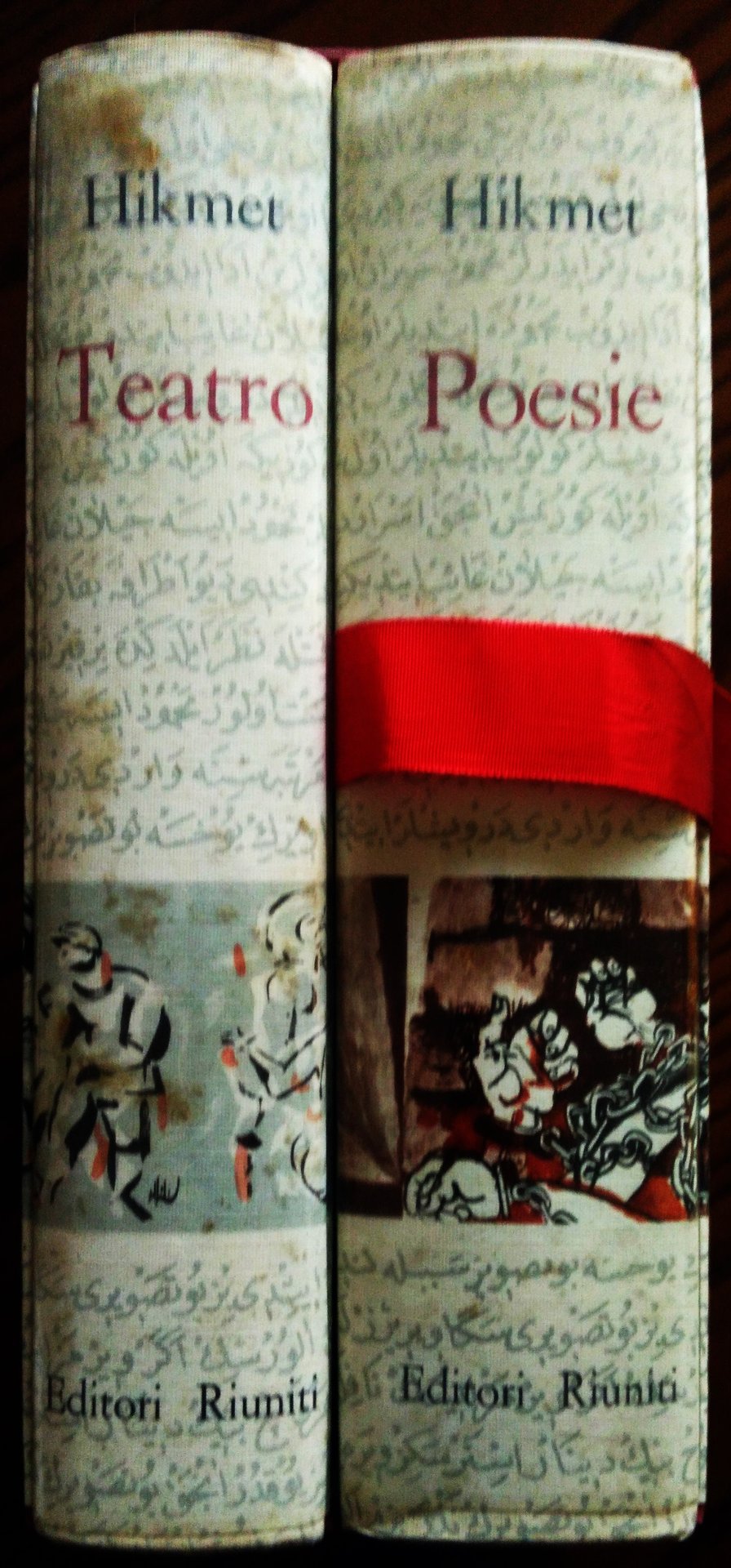 , Roma, Editori Riuniti, 1960. 8°, due volumi, legature editoriali, sovracoperte in acetato trasparente, cofanetto. POESIE, a cura di Giovanni Crino. Traduzioni di Ignazio Ambrogio, Giovanni Crino, Joyce Lussu, Velso Mucci. Illustrazioni di Renato Guttuso, pp. XVI, 711, 10 tavole a colori. TEATRO, a cura di Giovanni Crino. Illustrazioni di Abidine, pp. 594, 6 tavole a colori. Leggere tracce di sporco alle sovracoperte, bella copia.