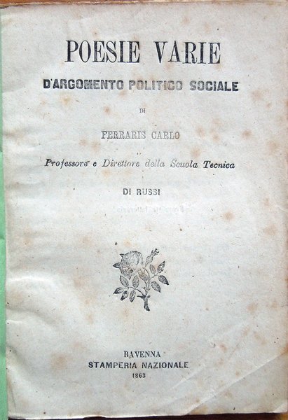 Poesie varie d'argomento politico sociale di Ferraris Carlo Professore e Direttore della Scuola Tecnica di Russi